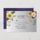 Charming and elegant, this modern boho-inspired wedding RSVP card features watercolor sunflowers and rustic floral accents in vibrant yellow, purple, and silver tones. Perfect for adding a botanical touch to your special day!