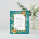 Beautiful watercolor yellow Sunflowers and sage green leaves and foliage feature on this country rustic boho themed wedding invitation.