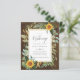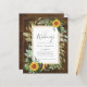 Beautiful watercolor yellow Sunflowers and sage green leaves and foliage feature on this country rustic boho themed wedding invitation.