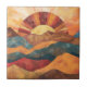 Boho Sunset Over Mountains -Retro Earthy Landscape Ceramic Tile