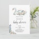 Boho Swan Dusty Blue Beige Flowers Baby Shower Invitation