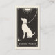 This business card features a tarot card style design in a black and cream colour palette. The illustration shows a dog on a lead sitting under the sun. This would be perfect for any dog walker or dog sitting service provider who prefers an alternative style business card and wants to make their business card memorable.