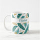 Boho Teal and Gold Feathers Script Name Coffee Mug