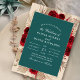 Plain white envelopes are included with paper invitations and will come to fit the invitation size you select. If you don’t need the envelopes, you may choose to not receive them by selecting the dropdown below "Envelopes" and choosing "None." If you’d like to have a design on your envelopes, you can browse all of these available envelopes to find the design that complements your Boho Teal Burgundy Roses Wedding Invitation.