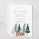 Whimsical boho simple watercolor, sleeping teddy bear forest baby shower invitation, in hues of green and rose.