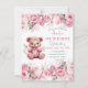 Boho Teddy Bear Girl Pink Bear Floral Birthday Invitation