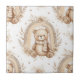Ceramic Tile - Charming boho teddy bear pattern with soft neutral rainbows, delicate florals, and scattered stars in warm beige tones. Cozy, dreamy aesthetic with a modern minimalist feel. Ideal for babies, toddlers, new parents, and boho nursery lovers.