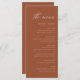 Add an elegant accent to your event tablescape with this customizable menu card. It features a whimsical script and simple typography. Personalize this boho menu card by adding your own details. This terracotta and white menu card is perfect for weddings, bridal showers, baby showers, and so much more.
