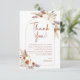 Boho baby shower thank you card in terracotta burnt orange and white. Beautiful modern design with hand painted botanical accents. Features pampas grass, dried banana leaves and roses. Trendy bohemian desert theme perfect for fall, winter, spring or summer. Perfect for a stylish baby shower.