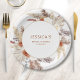 Boho bridal shower paper plates in terracotta burnt orange and white. Beautiful modern design with hand painted botanical accents. Features pampas grass, leaves and roses. Trendy bohemian desert theme perfect for fall, winter, spring or summer. Perfect for a stylish bridal shower.