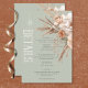 Set the tone for your special day with our enchanting boho rustic wedding details enclosure card. Featuring a soft sage green background, this design is adorned with a stunning spray of watercolor flowers and dried grasses. Delicate hues of peach blush, cream, and light sage green foliage, intertwined with light beige dried grasses, create a harmonious blend of rustic charm and bohemian elegance. Perfect for a summer or fall wedding that's uniquely you. Created by Simply Farmhouse Press.