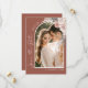 This Boho Terracotta Pampas Grass Photo Wedding Save the Date Card will help you share the good news of your engagement and upcoming wedding. This minimalist style features two photos on a terracotta earth tone background with an arch design and modern script font. Beautiful watercolor florals with papas grass and eucalyptus accent the card. Personalize with your own photos and details about your wedding.