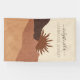 A Boho style terracotta sun and sand desert of abstract shapes business display banner, with personalized script signature for a handmade jewelry maker. Earthy organic natural style.