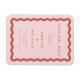 A trendy wedding save the date magnet featuring a terracotta squiggle frame on a blush pink background. Personalize with your details in terracotta.