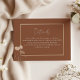 Share important information with your guests using this boho terracotta wedding details enclosure card. Designed with earthy tones, modern minimalist script, and soft floral accents, this insert is ideal for fall weddings, rustic celebrations, or desert-themed events. Easily customize to include your wedding website, RSVP info, directions, accommodations, or reception details. A stylish and practical addition to any modern boho invitation suite.