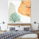 Boho design with green, orange and mint colors, unique textures and birds