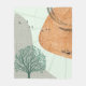 Boho design with green, orange and mint colors, unique textures and birds