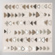 A geometric boho pattern of opposing rows of loosely filled and outlined triangles in a brown, taupe and ivory palette.