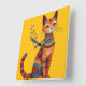 Boho Tribal Cat Cute Folk Art with Flowers Square Wall Clock