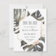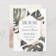 A beautifully tropical boho stylish wedding Save the Date card with your lush tropical watercolor botanicals that includes beige-peach orchids and sweetheart roses with Monstera leaf foliage. A geometric gold edged frame surrounds your text in modern style. Personalize the text template with your wedding details.