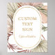 This boho tropical botanical cards & gifts custom sign is perfect for your elegant rustic floral, green, peach, rose gold wedding. Design features a gold frame or bouquet with modern blush pink pampas grass, simple sage, ivory, champagne palm leaf, and classic beach greenery. The flowers may include pink rose and orchid. The design is ideal for a classy vintage terracotta, beige, rust, winter, spring, fall wedding. Please find other matching or coordinating wedding stationery in the rest of the collection suite.