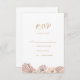 This boho tropical botanical | RSVP Card is perfect for your elegant rustic floral, green, peach, rose gold wedding. Design features a gold frame or bouquet with modern blush pink pampas grass, simple sage, ivory, champagne palm leaf, and classic beach greenery. The flowers may include pink rose and orchid. The design is ideal for a classy vintage terracotta, beige, rust, winter, spring, fall wedding. Please find other matching or coordinating wedding stationery in the rest of the collection suite.