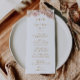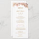 This boho tropical botanical | wedding dinner menu is perfect for your elegant rustic floral, green, peach, rose gold wedding. Design features a gold frame or bouquet with modern blush pink pampas grass, simple sage, ivory, champagne palm leaf, and classic beach greenery. The flowers may include pink rose and orchid. The design is ideal for a classy vintage terracotta, beige, rust, winter, spring, fall wedding. Please find other matching or coordinating wedding stationery in the rest of the collection suite.
