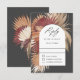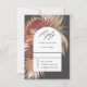 A beautiful mix of tropical dried fan palms framing your text in a popular geometric arched frame add a distinctive appeal to this wedding response card. The warm neutral color palette is a versatile choice throughout the year and is especially lovely for summer or fall weddings. Shown here with a charcoal gray background, other colors are available. Personalize the text template with your required RSVP date.