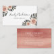 Elegant, boho tropical floral business cards featuring an arrangement of dark green tropical leaves, blush peonies and orchids. Personalize the front of the tropical floral business card by adding your name & job title. The unique floral business card reverses to feature your business details such as address, website, and email address in white with a terracotta blush watercolor background.. The perfect business card for event planners, wedding planners, florists, bloggers, & more!