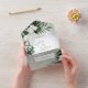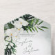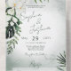 AVAILABLE WITH OR WITHOUT DINNER OPTIONS INSTEAD OF A QR CODE. This design features beautiful, lush tropic greenery and white florals on a soft green watercolor background. Perfect for the destination or beach wedding. Created by Simply Farmhouse Press.