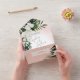 AVAILABLE WITH OR WITHOUT DINNER OPTIONS. ALSO AVAILABLE WITH A QR CODE IN THE RSVP AREA. This design features beautiful, lush tropic greenery and white florals on a soft peach blush watercolor background. Perfect for the destination or beach wedding. Created by Simply Farmhouse Press.
