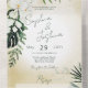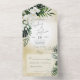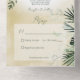 AVAILABLE WITH OR WITHOUT DINNER OPTIONS. ALSO AVAILABLE WITH A QR CODE IN THE RSVP AREA. This design features beautiful, lush tropic greenery and white florals on a soft sand yellow watercolor background. Perfect for the destination or beach wedding. Created by Simply Farmhouse Press.