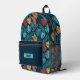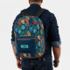 This boho-style tropical leaves backpack features a rich navy background adorned with vibrant botanical elements in shades of teal, mustard, coral, and crimson. Perfect for nature lovers and free spirits, the design captures the essence of jungle foliage with a bold artistic flair. The front pocket provides space for personalization, making it ideal for school, travel, or everyday adventures. Durable, stylish, and full of character — your next favorite statement piece.