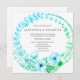 Boho Turquoise Floral Rustic Wedding invitation is a charming aqua watercolor floral design featuring a beautiful, large wedding wreath of turquoise and aqua leaves, flowers including poppies, fern fronds and berries. An elegant, yet very contemporary and simplistic wedding announcement with a rustic, botanical theme.