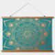 Boho Turquoise Peach Mandala Wood Topped Hanging Tapestry