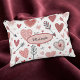 This pretty personalized pillow makes a nice Valentine's Day gift for a sweetheart or a child. The pattern includes red and pink boho stylized hearts, arrows and stars on a white background. On the front center is a matching pink oval banner with a name written in black. The back of the pillow has the same Valentine pattern but without the banner or name.