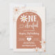 Boho Warm Tone Arch Daisy Onederful First Birthday Invitation