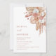 This elegant contemporary wedding invitation features watercolor painted orchid flowers and terracotta pampas grass on a white background.