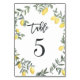 Boho Watercolor Lemon Wreath Table 5 Number