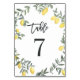 Boho Watercolor Lemon Wreath Table 7 Number