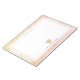 A notepad for teachers featuring an illustration of a light peach pink apple over a boho watercolor inspired background.