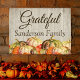 Watercolor pumpkins, BOHO Thanksgiving party decoration, farmhouse fall decor aesthetics, monogram monogrammed family name, decorative rustic gray barn wood, housewarming autumn seasonal gift