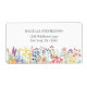 An elegant shipping label with a classic white background and, at the bottom, there is a colorful border of watercolor spring wildflowers. The modern, grey typography can be easily customized with your name and contact details.