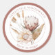 A round boho floral design featuring protea flowers, wild grasses, and soft wildflowers in cream and terracotta tones. Ideal for clothing designers, artisan boutiques, and organic fashion brands. Use it as a packaging label to seal tissue, wrap garments, or brand folded items. Customize the text to reflect your business name and elevate your presentation with a cohesive, natural look.