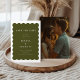 A retro stlye Boho Wavy Border Green and White Wedding Save the Date with your photo on the reverse.