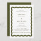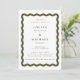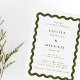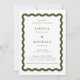 Plain white envelopes are included with paper invitations and will come to fit the invitation size you select. If you don’t need the envelopes, you may choose to not receive them by selecting the dropdown below "Envelopes" and choosing "None." If you’d like to have a design on your envelopes, you can browse all of these available envelopes to find the design that complements your Boho Wavy Frame Green White Wedding Invitation.