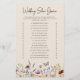 This stylish & elegant bridal shower boho wedding shoe game features gorgeous hand-painted watercolor wildflowers arranged as a lovely frame and elegant calligraphy script. The back includes a lovely coordinating pattern. Find matching items in the Boho Wildflower Bridal Shower Collection.