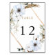 Bohemian wedding table number card with watercolor pampas grass and boho geometric frame.