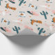 Cute boho pattern with playful western elements in Christmas style. Rose pink, dark green, ochre and white colors on beige background.