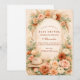 Warm desert florals, soft blush roses, muted terracotta blooms, and airy pampas grass frame this elegant western-inspired baby shower design. A subtle arched center layout keeps the look refined and timeless, while the cowgirl hat and rope accents add the perfect rustic touch. The neutral beige background pairs beautifully with earthy greens and sunset tones for a soft, romantic feel. Fully customizable for your event details and ideal for a boho, ranch, or western-themed celebration.